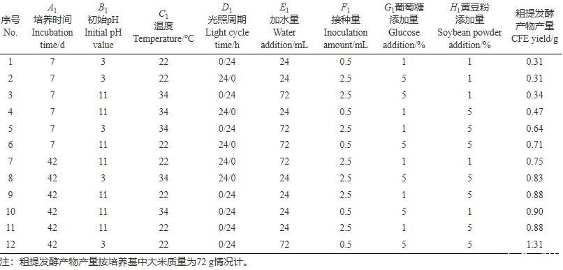 2.1.1固態(tài)培養(yǎng)基組分對(duì)粗提發(fā)酵產(chǎn)物產(chǎn)量的影響